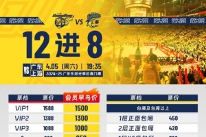 广东男篮首轮球票今日会员优先购 最低票价280元 最高1500元