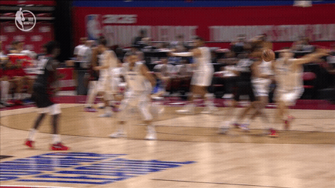 小杨在弧顶站位时的支配球能力在这场夏季联赛的比赛中显得超模,但他在比赛中让对手感到恐慌的还不止于此——他还具备射程,以及一些持球面框的技术。